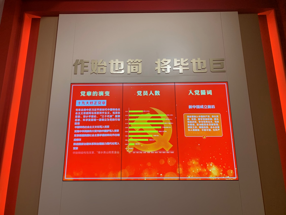 一幅幅展品,一段段文字和影片,在讲解员的生动诠释下,鲜活的红色历史跃然眼前。将历史的长镜头对准到1921年的那个夏日,中国共产党正式成立,在风雨如晦的中国大地上激起了开天辟地的惊雷,拉开了我党波澜壮阔的奋斗史序幕。