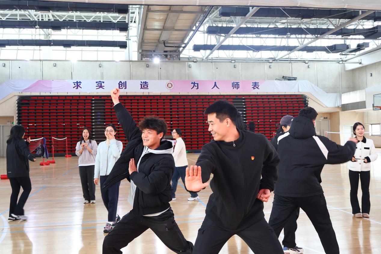 交流分享环节后,由体教民传学硕党支部党员张师侨带领三个支部的同学一同进行热身趣味赛,分为六组开展武术动作传递比拼,共有太极拳、翻子拳与长拳三个拳种,六组动作,最后各拳种分别决出优胜小组,并向获胜小组与参赛小组分别颁发活动纪念品。活动过程中,欢声笑语不断,同学们在有趣的活动形式中学习了解中华优秀传统体育项目武术一拳一划背后所蕴含的奥义。