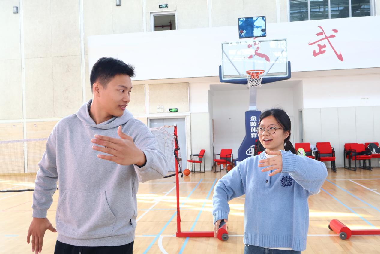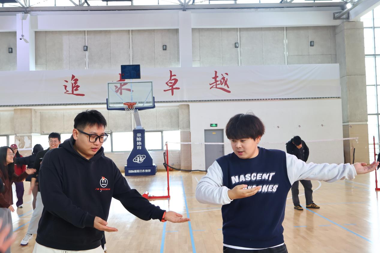 围绕本专业特色、发挥个人专长,杨宋泽祺与王梦特等民族传统体育学党员同志向大家介绍了柔力太极球这项新兴传统文化运动项目的研发背景,展示并介绍了发球、低进高出、体前横拉等技术动作,以及单打、双打和三打的比赛规则。每个小组在教练的指导下充分体验柔力太极球的项目魅力,以赛增进友谊的同时,更体悟到了老子《道德经》中“柔弱胜刚强”“无为而不为”的哲学思想。