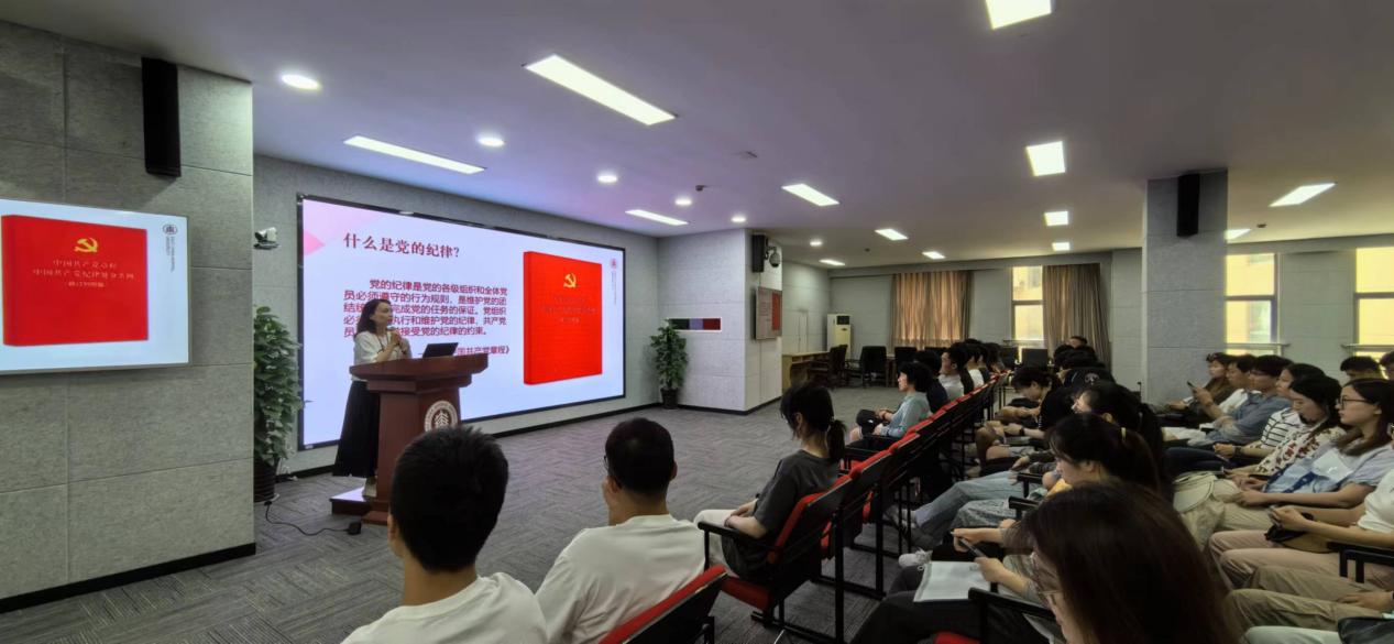黄岚兰从铭“纪”于心、违“纪”警示和执“纪”于行三个方面为毕业生党员开展党纪学习教育,她系统回顾了我国党纪建设的发展历史,深刻阐述了党的纪律建设对中国共产党自我革命和中国式现代化建设的重要性和必要性,并结合与员工学习、生活和未来工作关系密切的典型案例,加深了党员毕业生党纪党规的直观认识,了解违反党纪党规的严重后果及其危害性,进一步强化党员廉洁意识,提高党员党性修养。