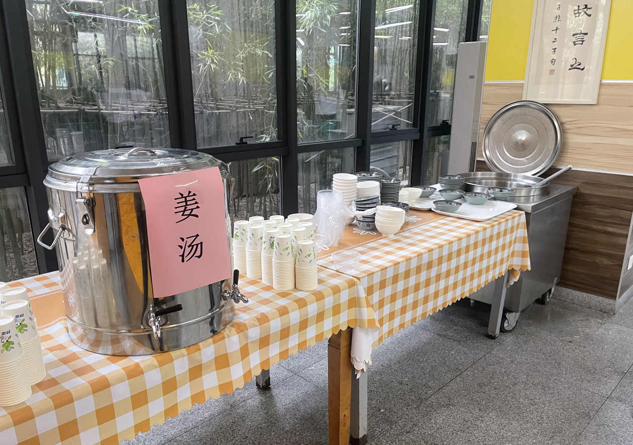 在后勤保障工作这一方面,组委会做足了准备,不仅提供了温暖的室内大厅供运动员休息,还设置室内热身区域,同时准备了大量的姜汤给运动员驱寒。由于赛事持续两天,公司食堂也提供了丰盛的午餐,广受运动员好评。