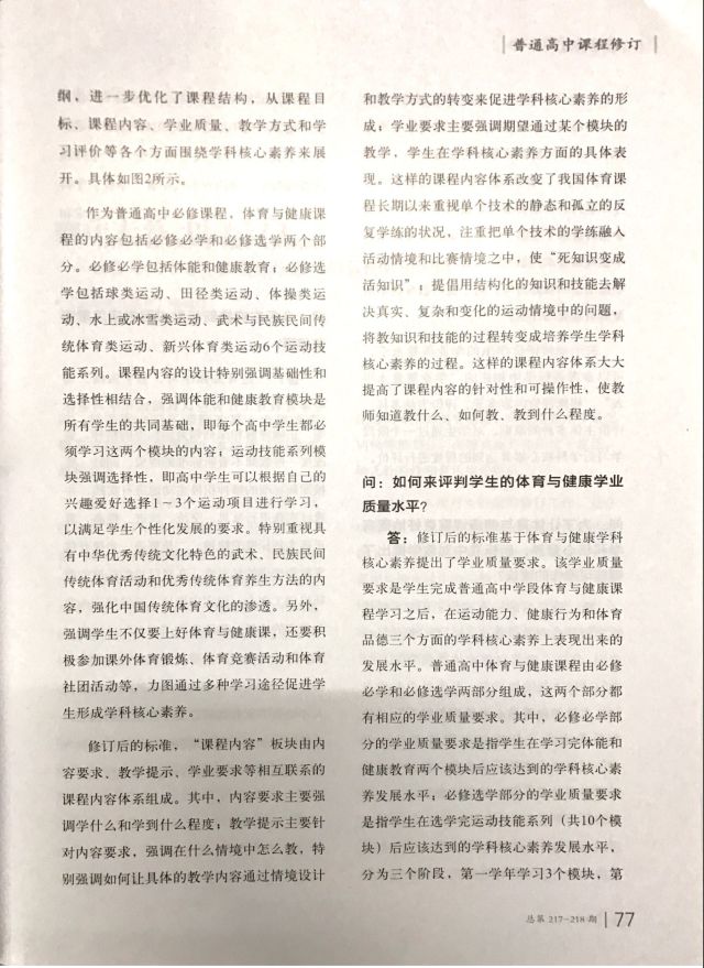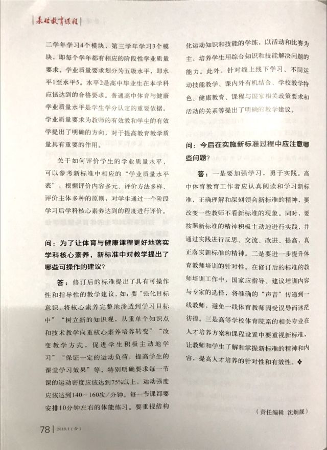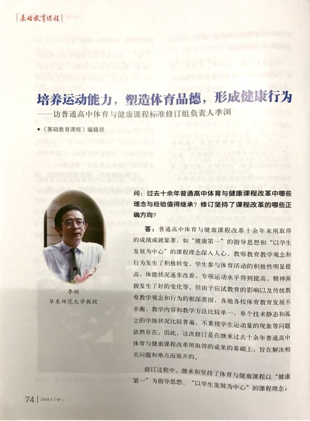 培养运动能力,塑造体育品德,形成健康行为——访普通高中体育与健康课程标准修订组负责人季浏