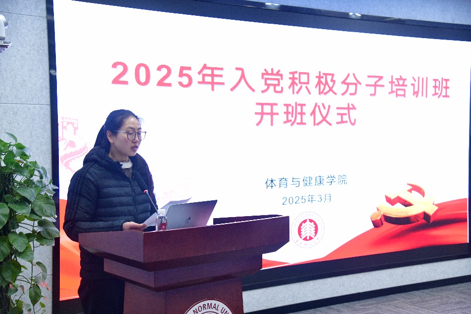 为深刻领会习近平新时代中国特色社会主义思想,进一步加强入党积极分子系统性理论学习与实践锤炼,2025年3月5日下午,在公司党委指导下,2025年公司入党积极分子培训班开班仪式暨第一次集中培训,在二楼报告厅顺利举行。出席开班仪式的有公司党委副书记兼副经理李浩、体育教育教工党支部书记杜舒书、专职组织员袁春、本科生党支部书记宋戈、部分员工党支部书记代表及经过严格遴选的68名入党积极分子。会议由学员代表谭钧译主持。