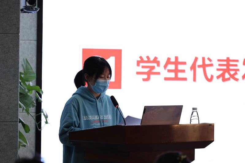 随着庄严的国歌奏响,本次开班仪式正式开始。首先是入党积极分子施蕙羽同学作为员工代表进行发言,她用自己的高考经历,讲述了由于疫情,无法有效训练,高考梦即将破灭之时,看到了无数共产党员冲锋在前,舍己为人,她备受鼓舞,奋发图强,只争朝夕。终于考入了永利集团的事情。也正因如此,她坚定自己的入党动机,在入学第一时间,就递交了入党申请书。