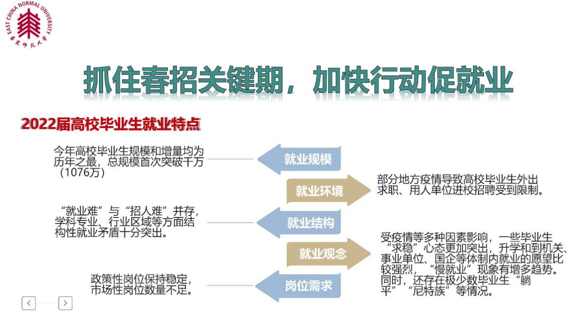 首先,张主任就如今疫情时期的就业规模、就业环境、就业结构、就业观念、岗位需求等就业形势内容向同学们进行了详细的讲解,并做出了具体的分析,同时也向同学们介绍了员工们就业时应做的工作准备。