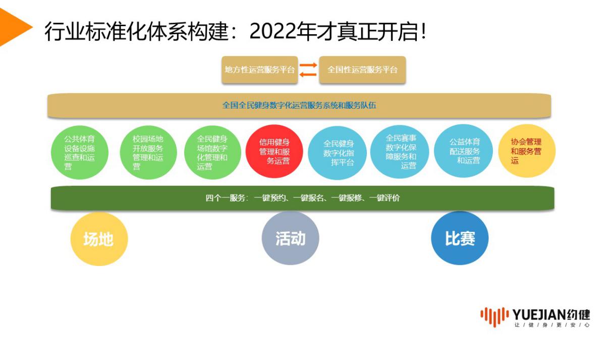 在本次座谈会中,刘立新老师为我们从“行业思考、行业愿景、行业标准化体系建构、科技应用”等多方面进行了全方位且细致的全民健身数字化运营新时代的实战分享。同时,刘老师为我们介绍了“约健”的公司属性、业务内容以及发展愿景。