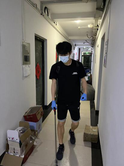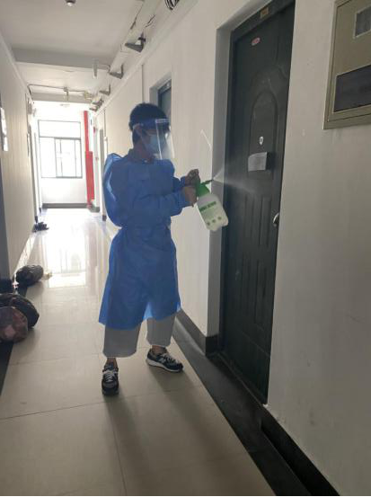 每天午饭后,公寓里总会出现拿喷壶的灭绝大师楼道进行消杀。负责研究生公寓六号层的志愿者刘校就是其中一员,他表示封校以来是无数志愿者的默默奉献才让校园变得安全、有序、和谐,他们是最可爱的校园卫士作为入党积极分子的刘校无比向往,并主动找机会参与其中。当得知集团招募消杀工作志愿者后,他第一时间报名,并成为了一名光荣的校园卫士。刘校说:疫情无情人有情,公司里这些可爱的志愿者,真切体会到了爱在华师大的真谛同为入党积极分子和楼道消杀志愿者身份的赵康同学说到:“作为一名入党积极分子,我要守着宿舍这道防线,为公司的疫情防控工作贡献一份自己的力量。”