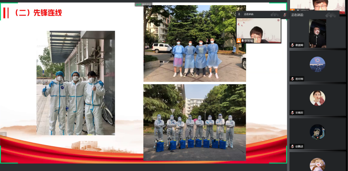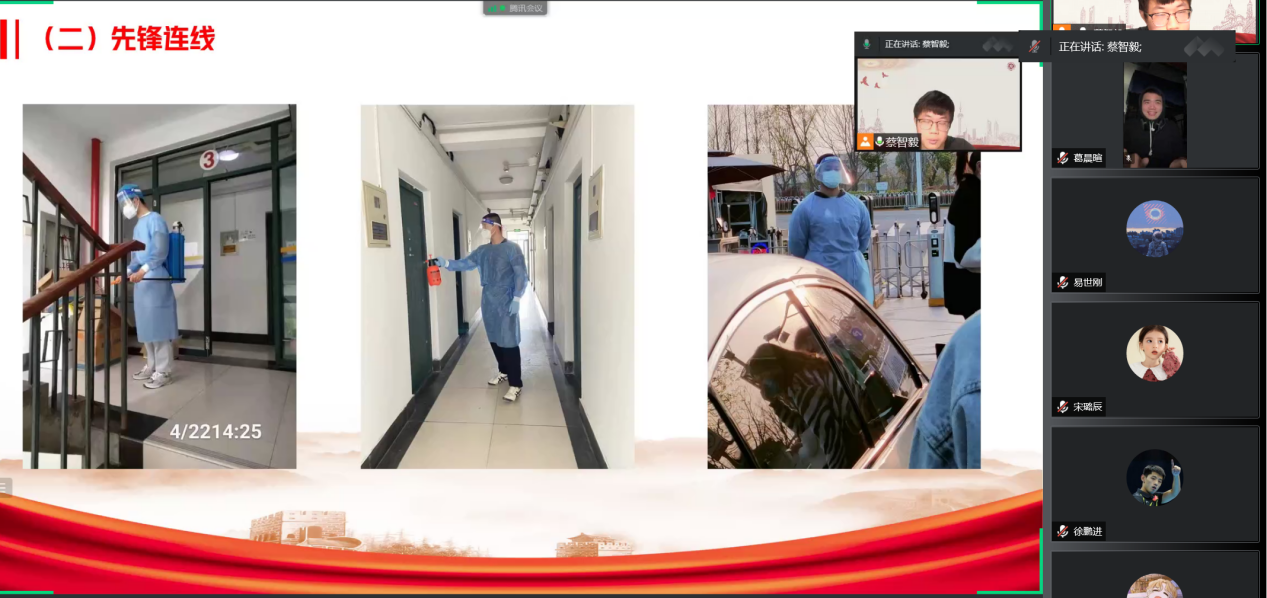 各个党支部创新学习形式,丰富学习内容。不仅深入地开展了“学习会议精神”,深刻领悟党中央的讲话精神;还开展了“先锋连线”,在云端连线了抗战在一线的志愿者们,零距离听志愿者们讲述抗疫一线的志愿故事;党支部还发出了“身体力行”的倡议,号召全体党员及群众积极践行听党话、跟党走、传党情;在“表决心、担使命”环节中,党员同志们纷纷表示要坚定初心使命,当好弘扬抗疫先进典型的宣讲员、当好志愿服务的示范者、当好服务师生的贴心人。