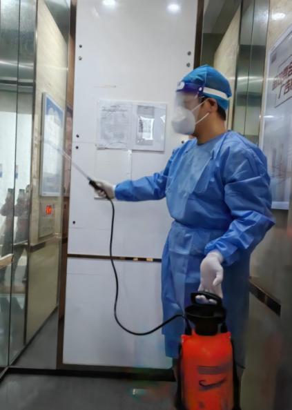 孙朋老师在给电梯消杀