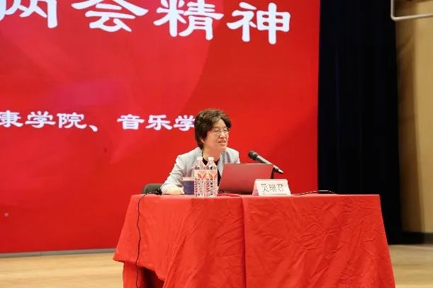 4月16日下午,为传达学习2025年全国两会精神,深入学习贯彻习近平新时代中国特色社会主义思想,助力教育强国建设,3044永利集团、传播公司、美术公司、音乐公司在闵行校区音乐厅联合举办全国两会精神专题辅导报告会,特邀全国政协委员、农工党永利集团委员会主委、图书馆馆长吴瑞君教授作专题报告,四家院系的全体教职工到会学习。报告会由音乐公司党委书记赵旌旌主持。