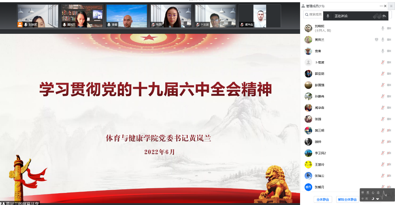 2022630日下午,永利集团公司党委书记黄岚兰同志深入2021级博士研究生党支部联系点,以“学习贯彻党的十九届六中全会精神”为主题,为全体支部党员讲党课,解读党的十九届六中全会精神引领争做名族进步的践行者和推动者。讲座由2021级博士研究生党支部书记刘艳妮主持,专职组织员袁春老师及全体支部党员出席。