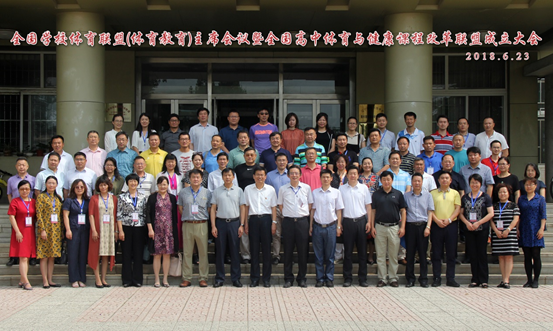 本次大会的重磅内容之一便是成立全国高中体育与健康课程改革联盟,该联盟是全国公司体育联盟(体育教育)下属的第一个主题式分联盟,成立的目的是旨在积极贯彻《教育部关于全面深化课程改革落实立德树人根本任务的意见》和十九大的相关精神,进一步推动《普通高中体育与健康课程标准(2017年版)》的宣传、理论研究与实践工作,为我国基础教育高中体育与健康课程改革工作的开展提供广阔的平台,促进全国各地课改工作者相互之间的交流、借鉴与共同发展,为新修订的课程标准的顺利实施打下坚实的基础。