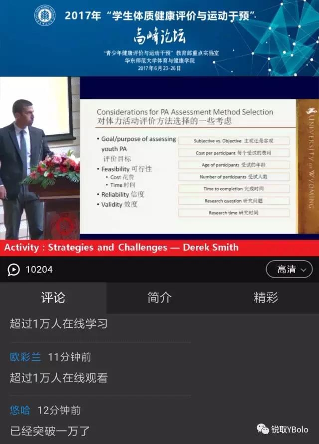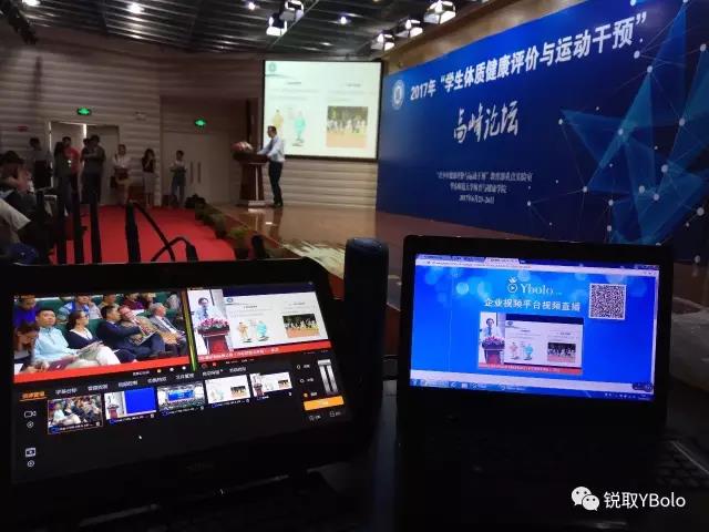 作为本次“员工体质健康评价与运动干预”高峰论坛的直播方,为保证直播的顺利开展,锐取使出“洪荒之力”,采用锐取yCat无线便携录播实时直播,锐取yBolo平台上吸引了上万名观众共享此次论坛盛会。
