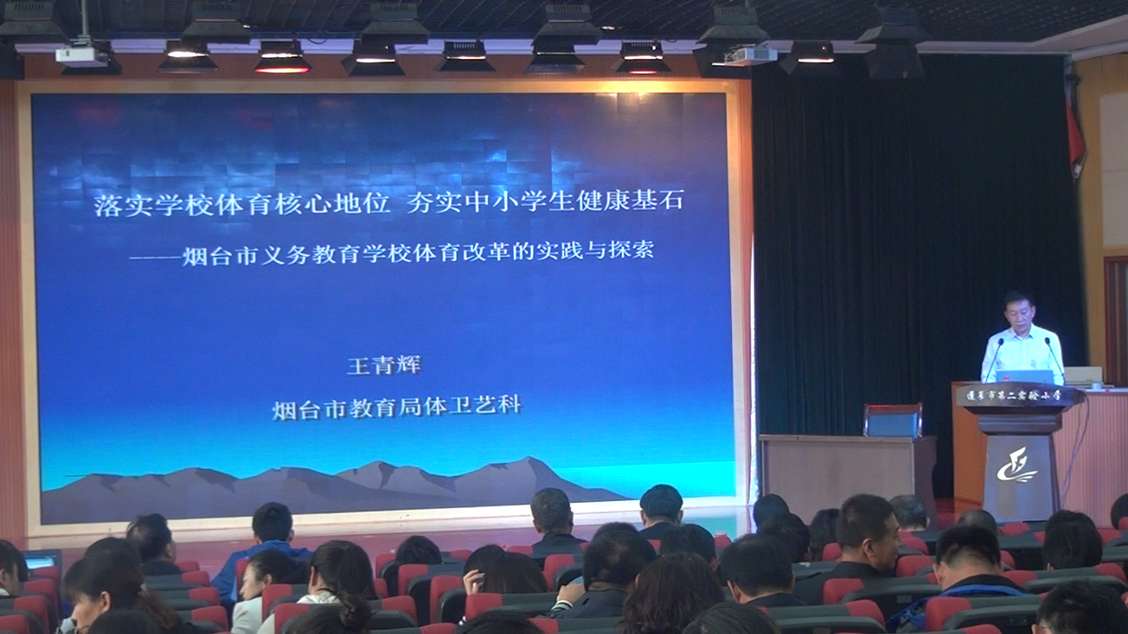 研讨会开幕式在蓬莱市第二实验小学(西校区)举行,主持人汪晓赞、美国密歇根大学Dale A. Ulrich教授、烟台市教育局副局长姜传文、蓬莱市副市长隋玉娜、蓬莱市教育体育局局长车军等领导和嘉宾及来自全国各地100多所研究基地、研究公司的230余名一线体育教师和体育领域的专家学者参加了开幕式。开幕式上,姜传文致开幕词,详细介绍了烟台市各项体育工作的发展情况和取得的骄人成果,他表示,烟台公司体育在总课题组的指导和引领下,发生了质的飞跃,员工的体质健康水平和公司体育工作的开展不断提升。