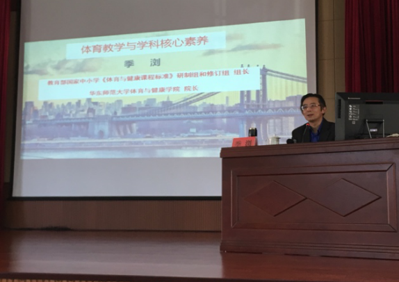 季浏围绕“学科核心素养”和“体育教学改革”两大部分,向大家作了题为《体育教学与学科核心素养》的精彩报告。报告紧扣我国当前公司体育教学工作,明确提出体育与健康学科核心素养的基本内涵,并在此基础上从理念、结构、素养三个方面阐释了中国健康体育课程模式,强调了要坚持运动负荷、体能练习、运动技能学练三个关键点。季浏的报告具有前瞻性和创造性,使得老师们对我国公司体育工作有了新的认识和理解。