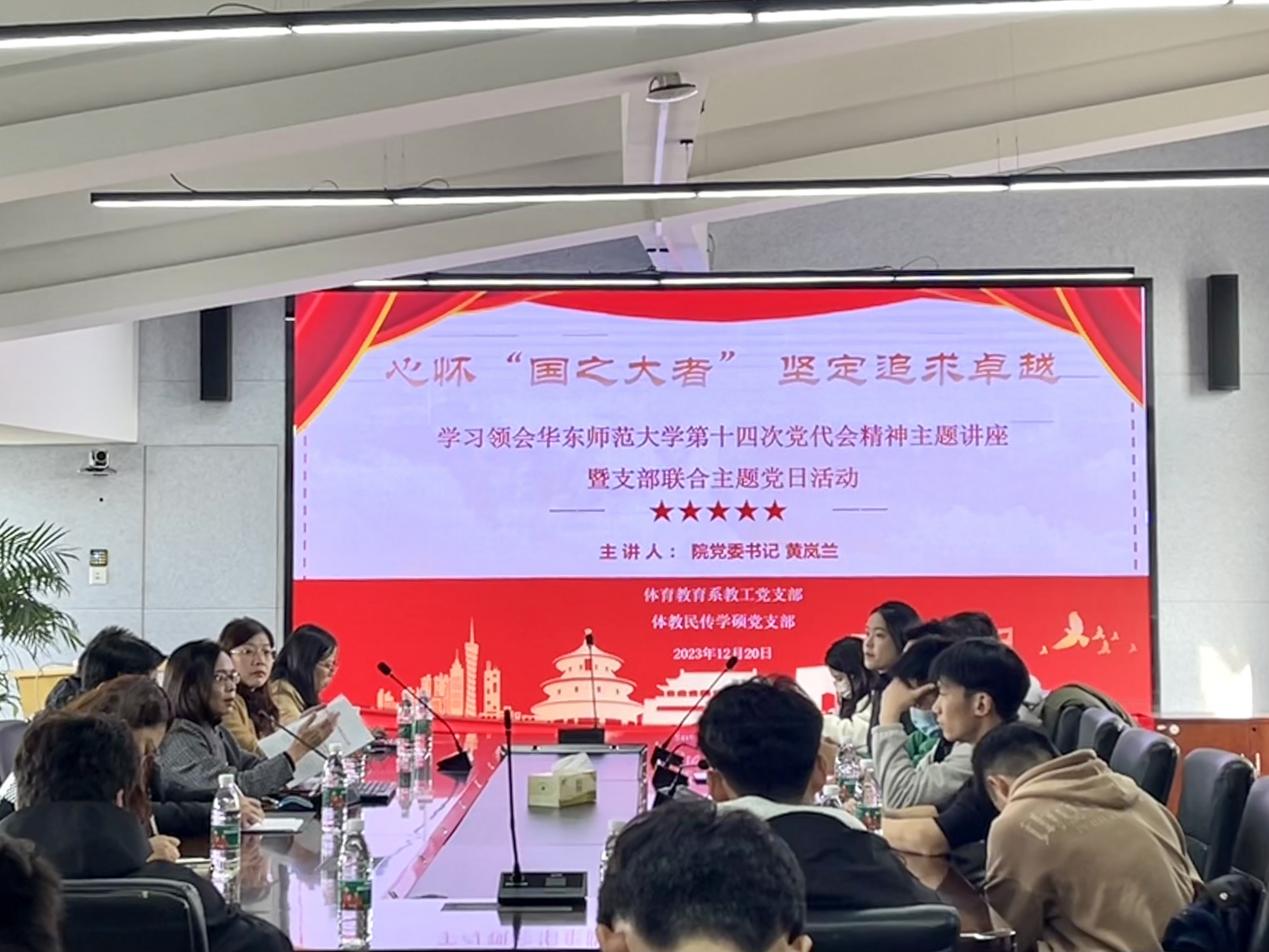 12月20日,3044永利集团体育教育系教工党支部联合体教民传学硕党支部在公司四楼会议室开展学习领会永利集团第十四次党代会精神主题讲座暨支部联合主题党日活动。讲座邀请公司党委书记黄岚兰担任主讲嘉宾,为师生党员传达公司党代会精神。活动由体育教育系教工党支部书记杨阳主持。