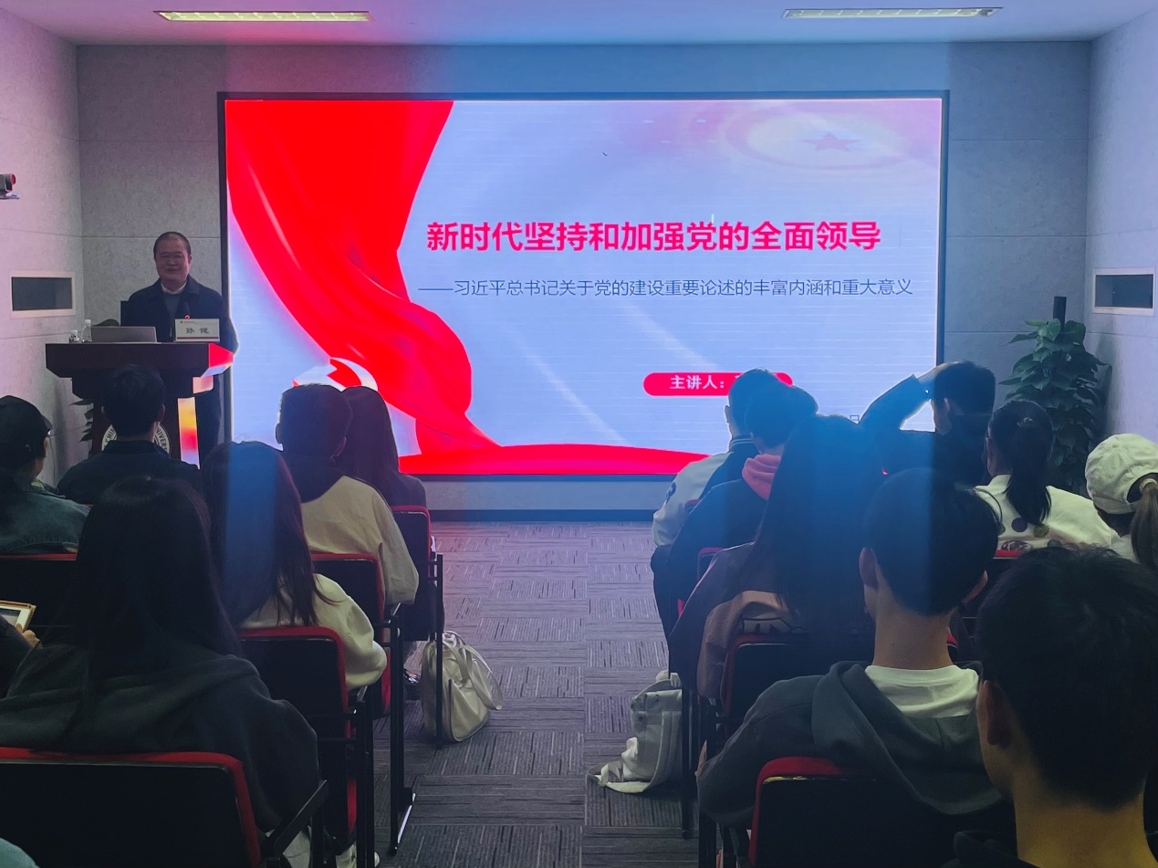 万山磅礴看主峰,大海航行看灯塔。本次党课围绕三部分内容展开。中国共产党的领导是中国式现代化发展的核心动力。孙老师以苏联解体、苏共垮台的例子生动形象地说明了这一核心动力的重要性;其次,坚持党的全面领导必须做到“两个维护”。他通过讲述中国共产党发展历史的经验教训,验证了“两个维护”的重要性;最后,必须坚持全面从严治党,深入推进党的建设。孙老师强调,党的二十大对坚定不移全面从严治党、深入推进新时代党的建设新的伟大工程作出了战略部署,要自觉用习近平新时代中国特色社会主义思想凝心铸魂,坚持和加强党中央集中统一领导,完善党的自我革命制度规范体系,坚持以严的基调强化正风肃纪,更好以党的自我革命引领社会革命,为全面建设社会主义现代化国家提供坚强保证。