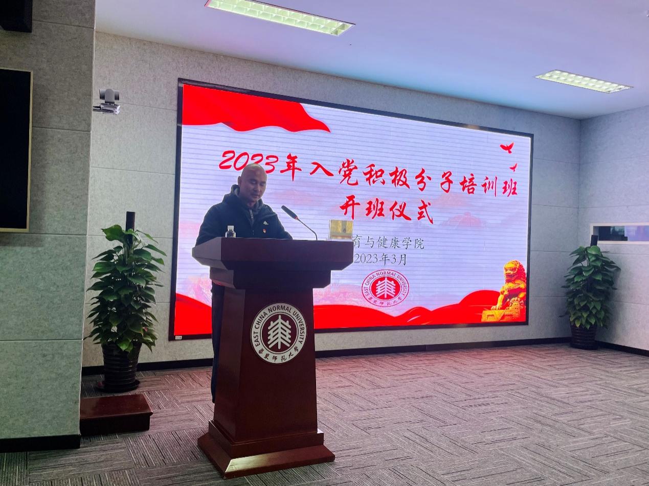 3044永利集团2023年度员工入党积极分子培训班于2023年3月8日在公司二楼报告厅顺利开班。本期培训班学员由38名本科生、23名硕士生、2名博士生,共计63人组成。公司党委副书记兼副经理李浩、体育教育系教工党支部书记杨阳、大学体育教学部党支部书记虞轶群、公司经理助理胡玉姣、本科党支部书记宋戈、特邀党建组织员退休党支部书记沈伟涛、专职组织员袁春及部分员工党支部书记代表出席会议。会议由专职组织员袁春老师主持。