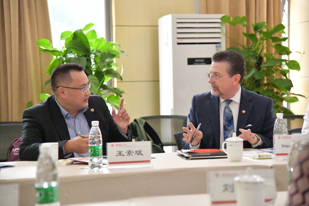 副董事长Stuart Jones对公司在国际化合作中所取得的成就表示赞赏,介绍春田公司的办学理念和“红色三角文化”——德、智、体三者平衡发展,指出春田公司有着良好的运动传统,它始终坚持运动是一种教育手段和可以帮助员工全面发展的理念,并希望两校在人才培养、交流学习、科学研究等领域开展更具体的合作项目,两校合作交流向更深层次发展。与会代表团还通过短片了解春田公司人才培养方式及员工学习生活及就业等情况。会谈间,双方具体围绕“2+2”本科生联合培养双学士学位项目、员工短期交流交换及交流访学等内容深入交换意见,并初步达成合作的共识。会后,双方互赠礼物,表达了合作的真诚愿望和美好祝福。