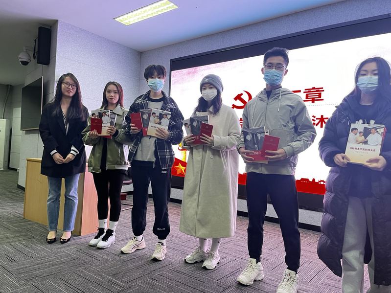 在同学们分享结束之后,王祉懿书记为这段时间支部内表现良好,思想积极上进的党员同志代表:毛倩、杨婕、吴娴、杨思颖、徐胜昔进行了授书。五位党员同志纷纷表示很荣幸能够参与这样一次深入的学习与阅读活动,并在今后的学习生活中以更加严格的标准要求自己,并在思想上不断革新,学习党的新思想,定不负党组织寄予的厚望。