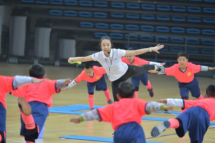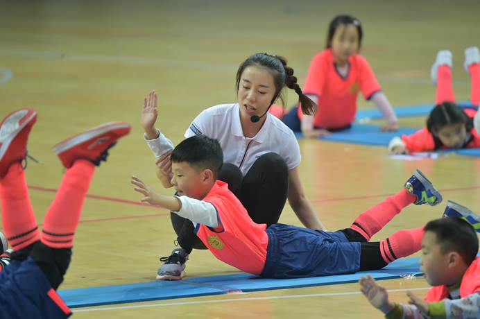 首先是第一节体育展示课,来自广东省深圳市龙岗区甘李公司的王洋老师带来了《水平一KDL课程组合单元第一课时》(二年级)。