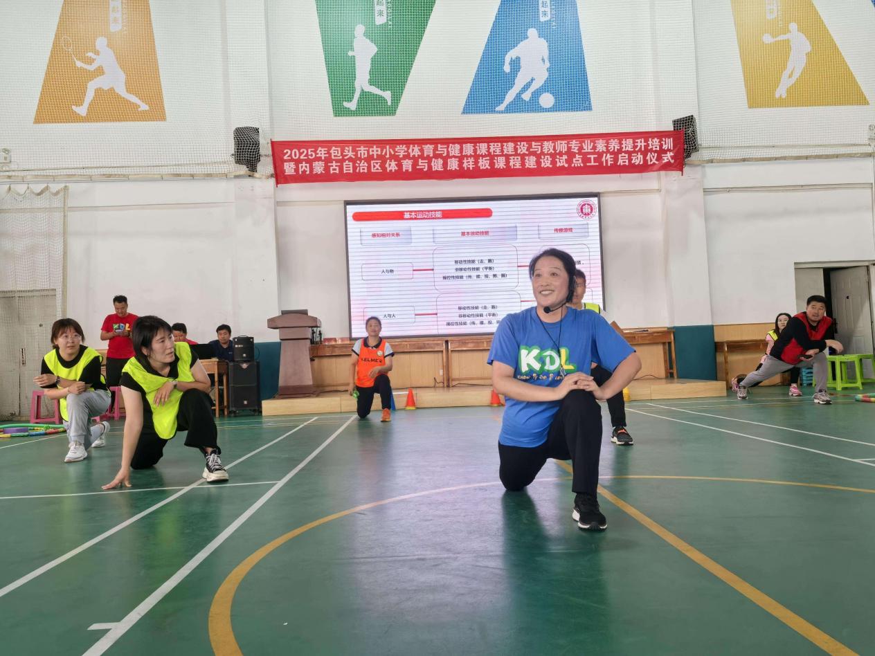 公司党委组建体育教育系教工党支部为项目责任体,梦想导师汪晓赞引领公司“党员教师专家团”,邀请体健公司优秀员工、中小学体育教学专家王晖、姜斌、徐勤萍、李菲菲等,在前期为内蒙古健康促进公司开展线上培训的基础上,进一步为包头市300余名体育教师开展为期3天的线下集中课程培训。课程涵盖“基础教育体育与健康课程标准解读”“基于课程标准的专项运动技能大单元教学设计”“基于课程标准的体育与健康教学实践WORKSHOP工作坊”等10余场理论与实践相结合的培训内容,专家团队还受邀参与包头市体育与健康课程展示、观摩研讨活动,为2012届员工、包头市教研员王俊杰组织的包头市体育健康课堂教学案例展示进行针对性地传经送宝,并开出个性化的教学优化处方。在系统培训后,梦想导师汪晓赞还宣布成立了首期“KDL草原优秀体育教师工作坊”,为怀揣教育梦想的优秀体育教师提供“五个一”帮扶计划:每月一次云端教研、每季一次送教上门、每年一批跟岗研修、结对一组科研项目、共建一个课程资源库。