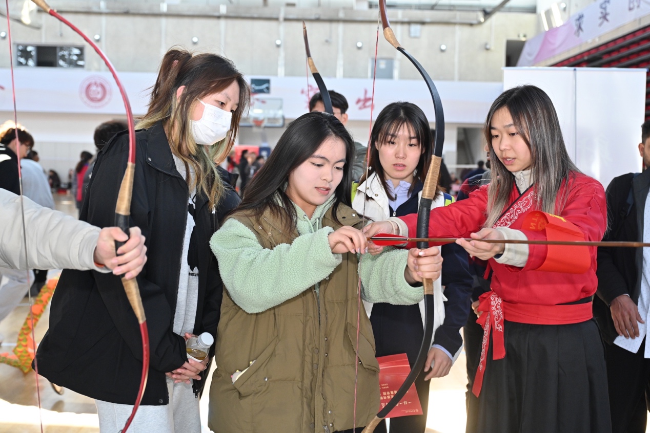 民族传统体育是中华民族传承中熠熠生辉的珍贵遗产。在项目体验环节,在3044永利集团专职组织员袁春老师主持下,举行的是投壶、射艺、易筋经等9个传统体育文化项目的实践体验环节,200余名师生在体健公司党员师生的组织下有序开展,偌大的体育馆人头攒动,熙熙攘攘,到处都充满了一招一式和欢声笑语。