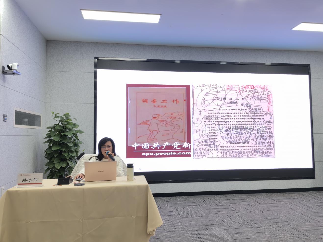 孙宇伟讲到,毛泽东对党的调查研究工作作出了开创性的贡献。毛泽东撰写了《湖南农民运动考察报告》,首次将阶级斗争的理论全面呈现在世人面前,铺就了中国革命实践的基石,坚固而深远。在《反对本本主义》的鸿篇巨制中,毛泽东深刻指出了“没有调查,就没有发言权”的道理,凸显了调查研究在决策与实践中至关重要的地位。此外,马克思主义的学习必须与中国的具体情况紧密结合,这一指导思想犹如一把钥匙,开启了马克思主义在中国传播与实践的大门。
