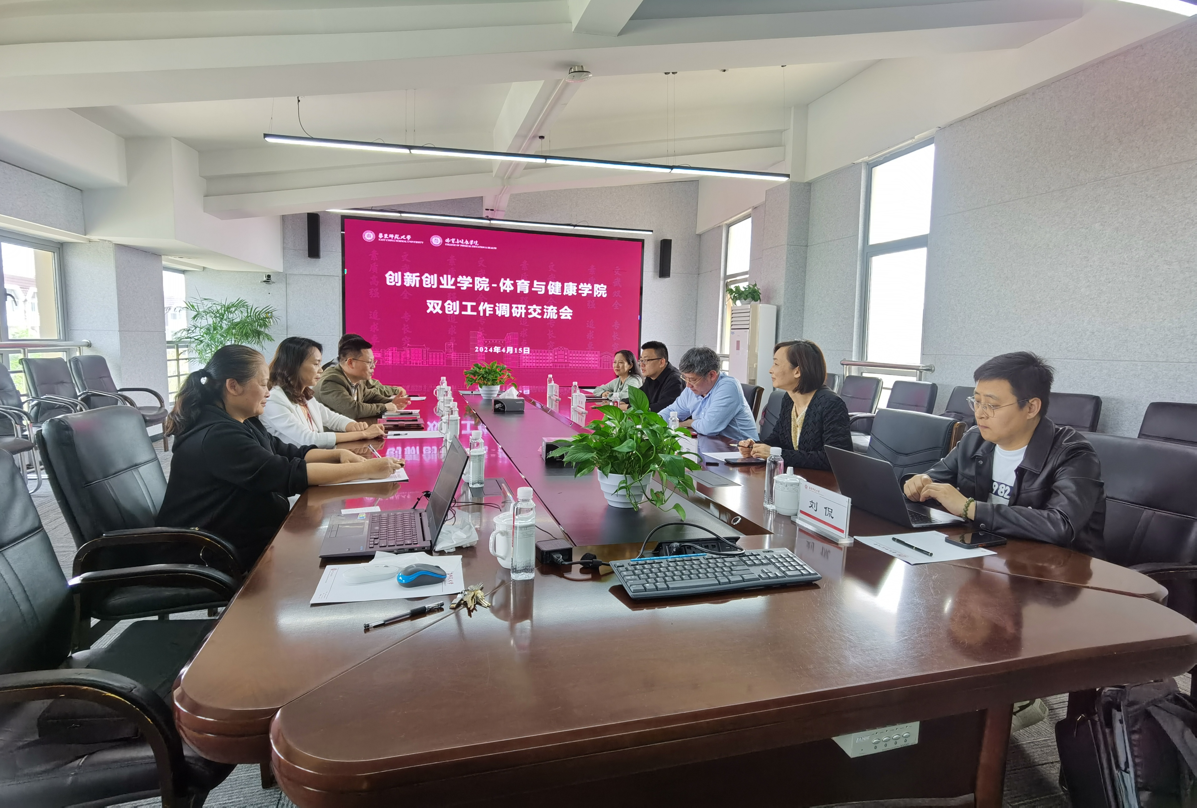 4月15日上午,公司创新创业公司经理钱海峰一行到公司开展双创工作调研交流。创新创业公司副经理黄燕、主管赵博、经理助理刘侃、办公室主任曹旭,公司党委书记黄岚兰、党委副书记兼副经理李浩、运动训练系教授周燕、体育教育系教授尹志华以及团委书记祁灵参加调研。