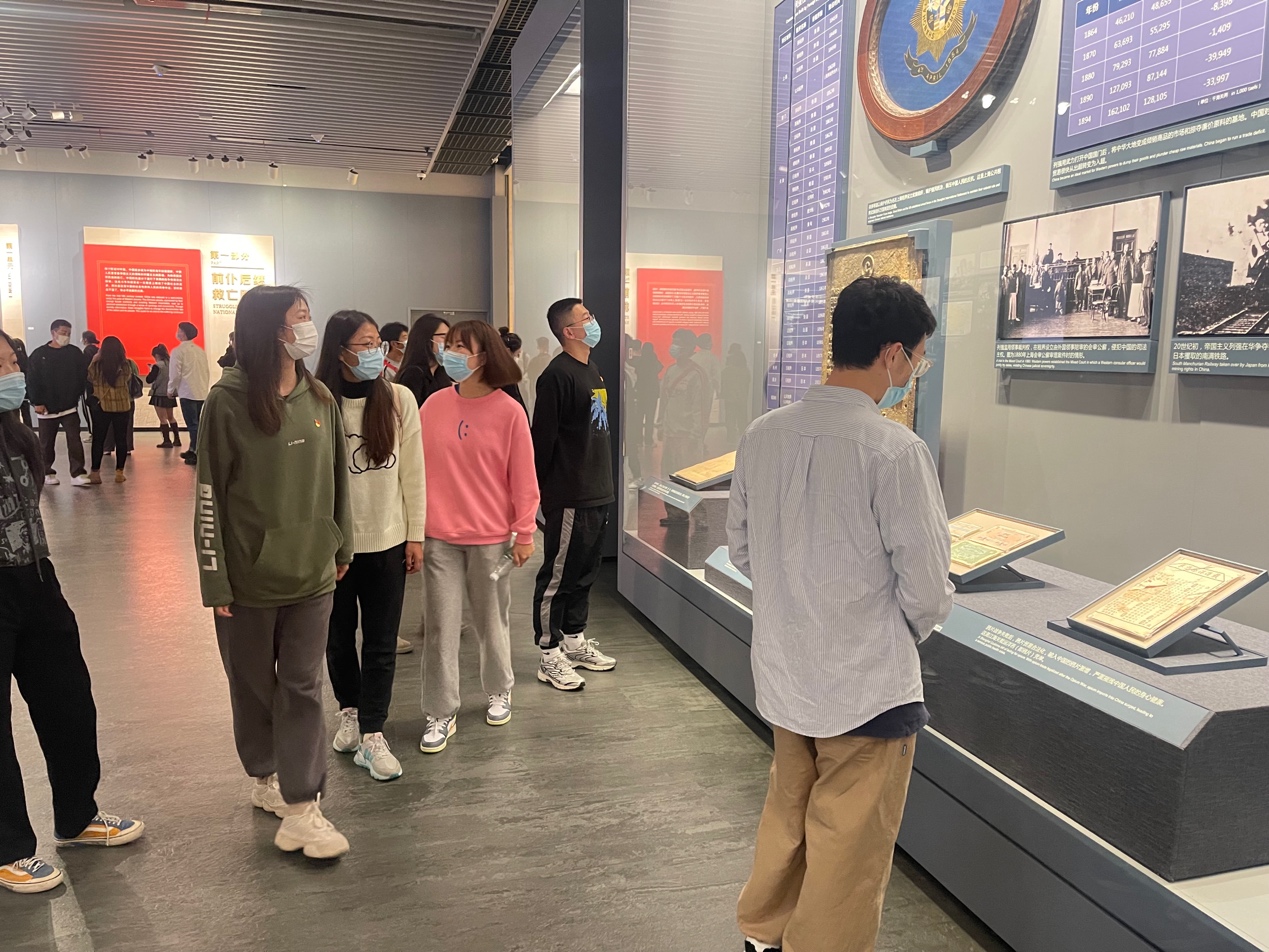 青年奋发,勇担使命。上海是红色革命的发源地,是中国共产党的诞生地。从复兴路到兴业路,从石库门到天安门,历史的图画具体写实而又耀眼夺目。一块块展板、一幅幅照片、一座座雕塑、一件件物品、一位位人物,一横一竖、一撇一捺都谱成了革命的新乐章。同学们深切地体会到党的鲜明性,接受了党的精神熏陶。在完成整个纪念馆的参观之后,很多同学都难以抑制内心的激动,在纪念书签上写下了自己的深刻感悟与祝福期许。