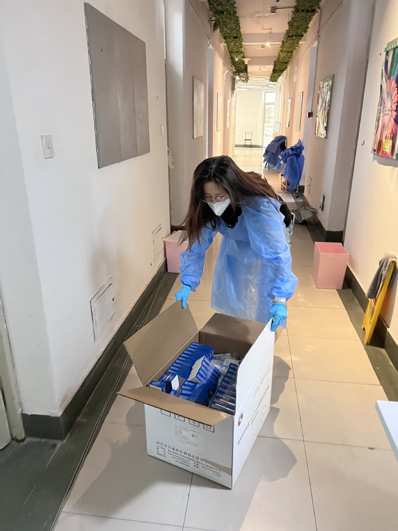 3月13日,疫情之初,在得知封校的消息后,她通过选调生训练营第一时间报名担任了本科生公寓21号楼一层楼层长,从那天起“小蓝人”龚汇江同学就正式上岗了。在封校初期频繁核酸检测的日子里,利用楼层长工作间隙,她还积极报名参与了核酸志愿者工作,在核酸检测点做引导工作。当问到龚汇江同学参与核酸志愿者工作的体验时,她回答到:“参与志愿服务工作,让我深深体会累并快乐着。当然,更重要的是让我对医护人员的敬佩之情愈加强烈,他们不畏危险和辛苦,身着防护服从第一个员工开始忙到最后一个员工的结束,一刻不停,这是一丝不苟的工作精神,更是坚持到底的抗疫精神!”