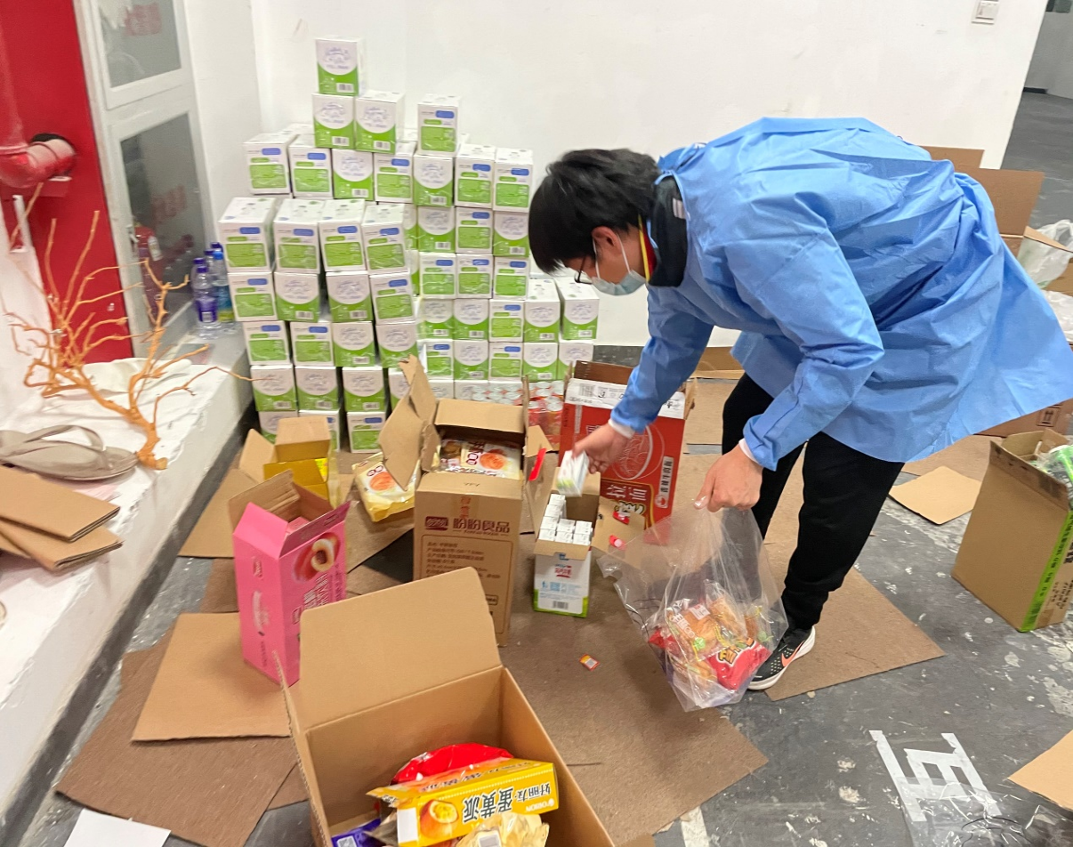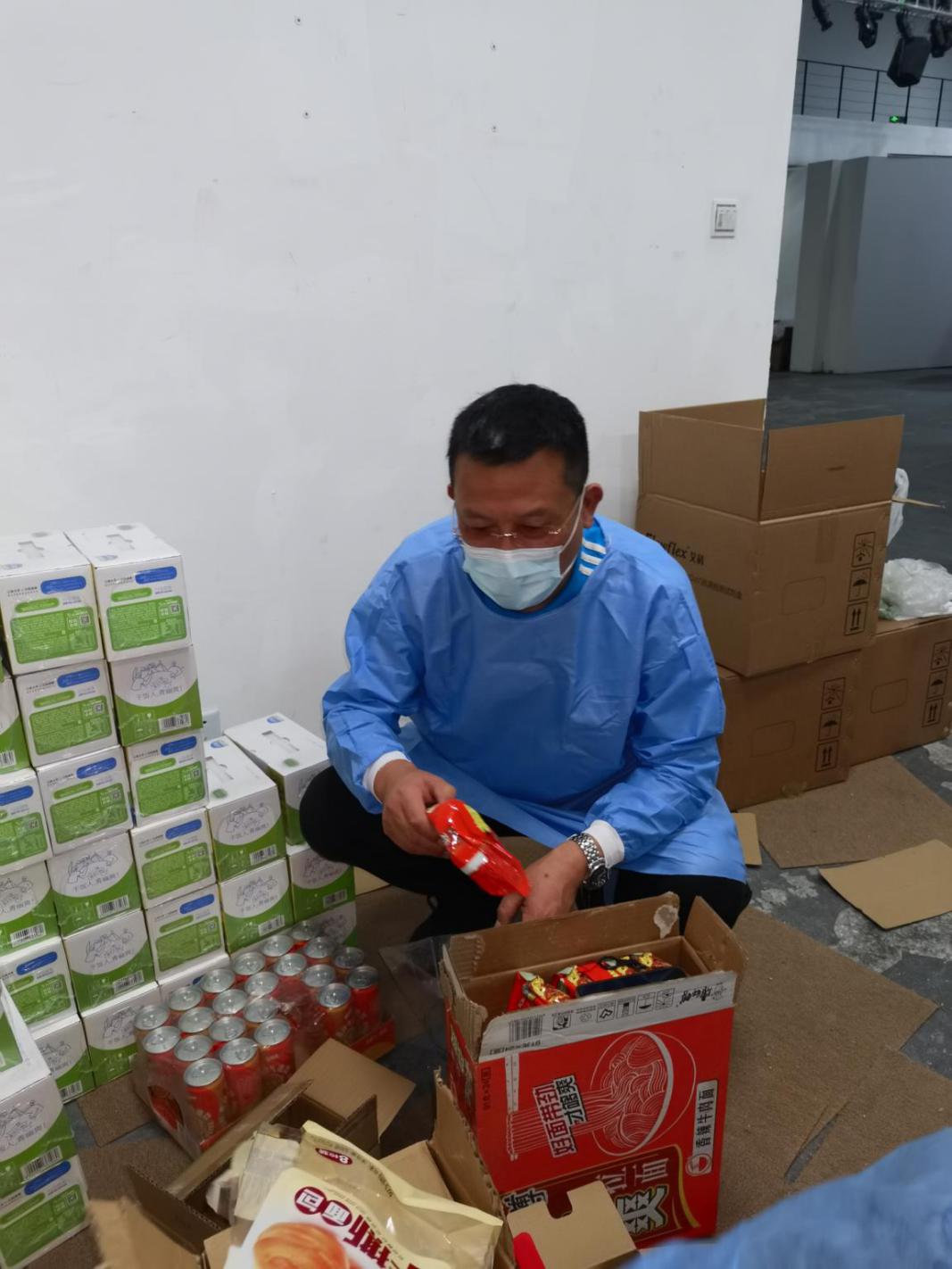 国交中心是普陀校区疫情防控隔离观察点和疾控流转点,是公司疫情防控的重点、难点和危险点,大量的疑似病例在这里隔离排查和待疾控转运,可以说这就是校园里的“小方舱”。危险之中,需要勇夫。陈海涛副经理临危受命,他担任的就是丽娃片区和国交中心隔离观察点的负责人。作为一名党员,他带头深入一线,全力指导疫情防控工作。他不仅要协调各部门统筹安排工作,对工作人员和志愿者进行调度和培训,还要逐一核查风险防范点。同时他更是亲力亲为,一会当搬运、分拣物资员,一会当场所灭杀消毒员,还要当转运人员数据核对员,陈海涛副经理在各个岗位上轮番体验不同角色,这一干就是43天,直到被公司安排轮岗为止!他笑言:在最危险的4月中旬,工作忙到凌晨1-2点是常有的事,有时候甚至忙到天明才收工,然后倒头睡下个把小时接着继续战斗。那几天,忽然发现自己还是蛮年轻的,在强大的意志支撑下,体力、精力一下子又回到了年轻时代。