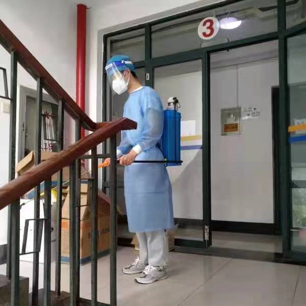 负重”前行,只为给你送来全方位的安全。2021级学术型硕士研究生党支部纪检委员易世刚同学在分区管理后,立即申请加入了北区消杀志愿者队伍。4月以来,他穿着密不透风的防护服,背着30多斤重的喷雾器走遍了整个北区,不放过任何一个死角,不留下任何一丝危险。脱下防护服,虽早已汗流浃背,但身心却舒畅了许多。他说:“忍受住炎热,清爽才更有意义;忍受住寂寞,校园才更热闹。”